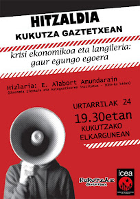 Urtarrilak 27ko grebari begira, krisi ekonomikoa deritzona eta langileriaren egoera aztertzeko hitzaldi bat prestatu nahi izan dugu Kukutza gaztetxetik Plentziko gazte asanblada eta ICEA(zientzia ekonomiko eta autogestioaren institutua)ren laguntzarekin.