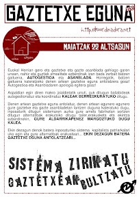 Egurre peña!! Badago martxan Euskal Herriko gaztetxe eguna prestatzeko lantaldea!! Aurten, Altsasun izango da(Nafarroa), hona hemen altsasuko gaztetxeko web orrialdea eta EH-ko koordinadorakoa, eta herriko irudiren bat.